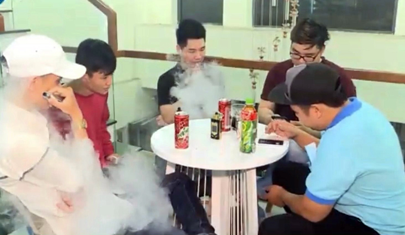 Nhóm thanh niên hút thuốc lá khói bay mù mịt, ảnh hưởng tới người không hút.