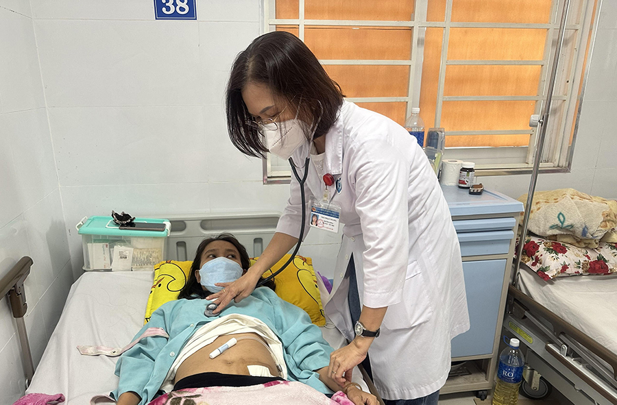 BS Thái Phạm Thị Hòa kiểm tra sức khỏe cho bệnh nhân trước khi thực hiện kỹ thuật lọc màng bụng.