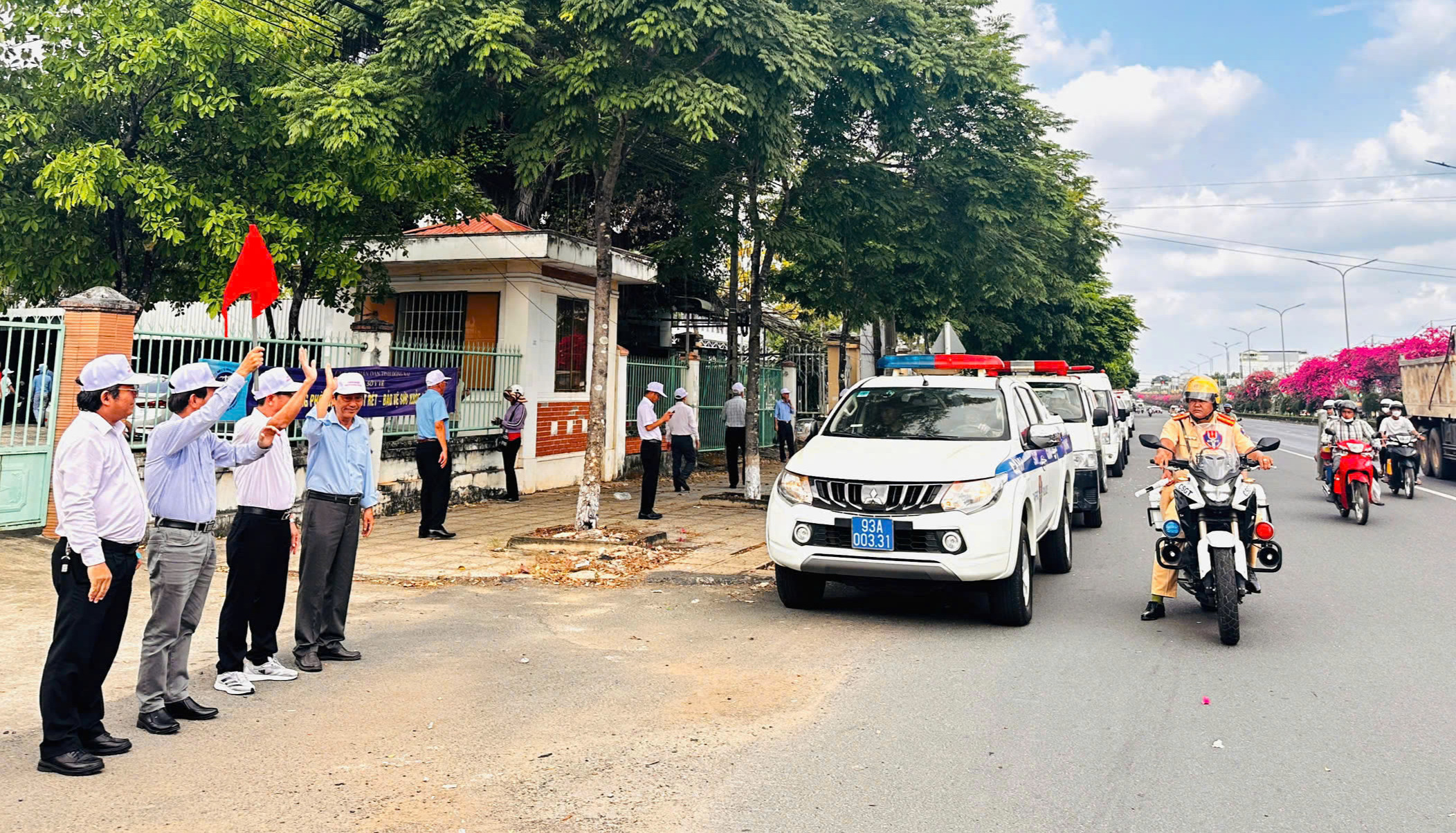Lãnh đạo Sở Y tế và các đại biểu phát lệnh cho đoàn xe diễu hành.