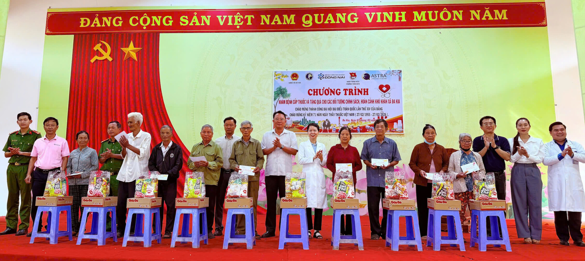 Chào mừng thành công Đại hội đại biểu toàn quốc lần thứ XIV của Đảng và kỷ niệm 71 năm Ngày Thầy thuốc Việt Nam (27/02/1955 – 27/02/2026), ngày 7-2, đoàn công tác Bệnh viện ĐK Đồng Nai do BS.CKII Lê Thị Phương Trâm – Phó Giám đốc bệnh viện làm trưởng đoàn đã tổ chức chương trình khám bệnh, tư vấn sức khỏe và cấp phát thuốc miễn phí cho hơn 200 người dân có hoàn cảnh khó khăn tại xã Đa Kia (khu vực Bù Gia Mập).
