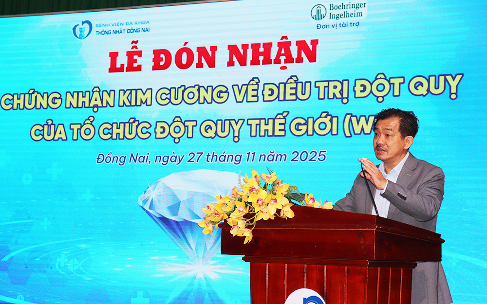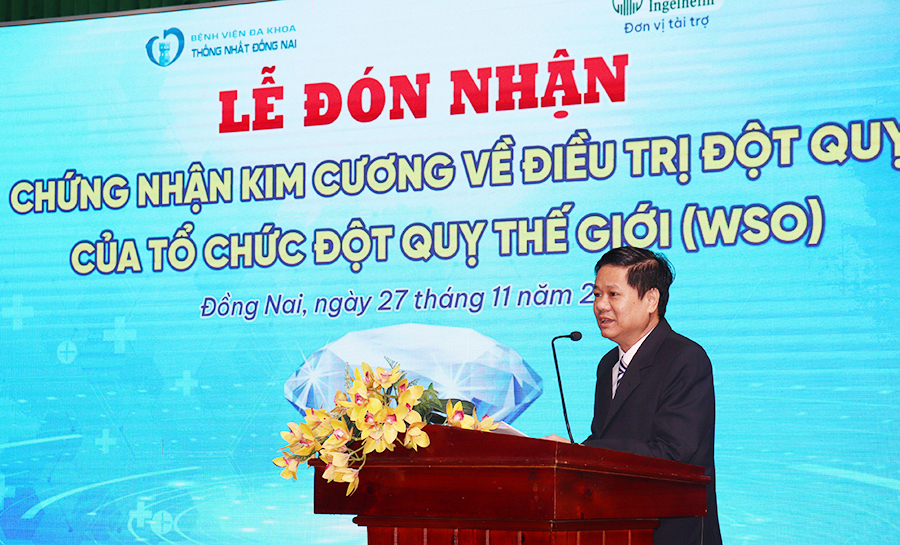 Sáng 27-11, Bệnh viện ĐK Thống Nhất (Đồng Nai) tổ chức Lễ công bố đón nhận Chứng nhận Kim cương trong điều trị đột quỵ của Hội Đột quỵ thế giới (WSO). Đây là bệnh viện thứ 2 của Đồng Nai đạt chứng nhận cao nhất trong điều trị đột quỵ.