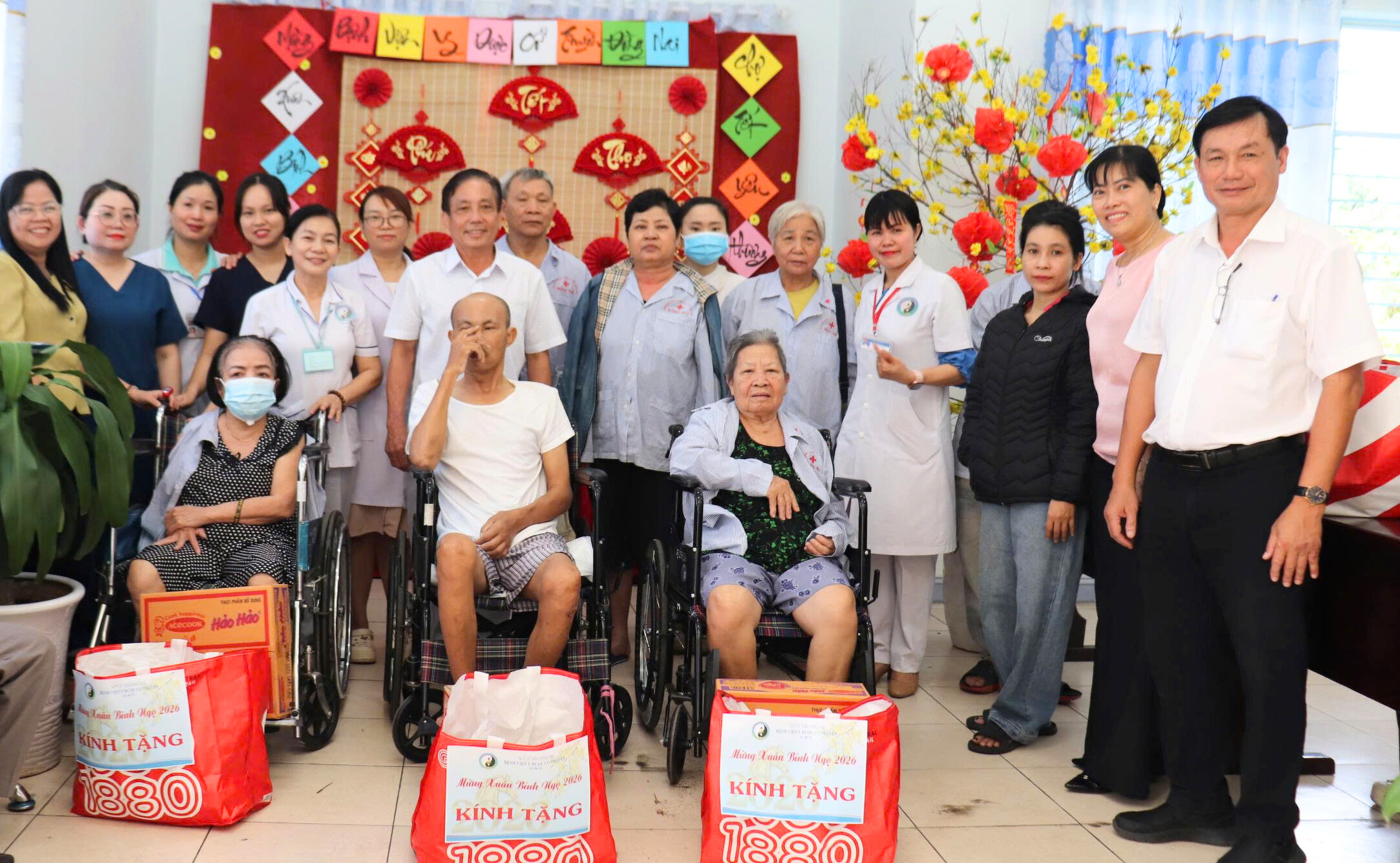 Đại diện Ban Giám đốc và các nhân viên bệnh viện tặng quà cho các bệnh nhân.