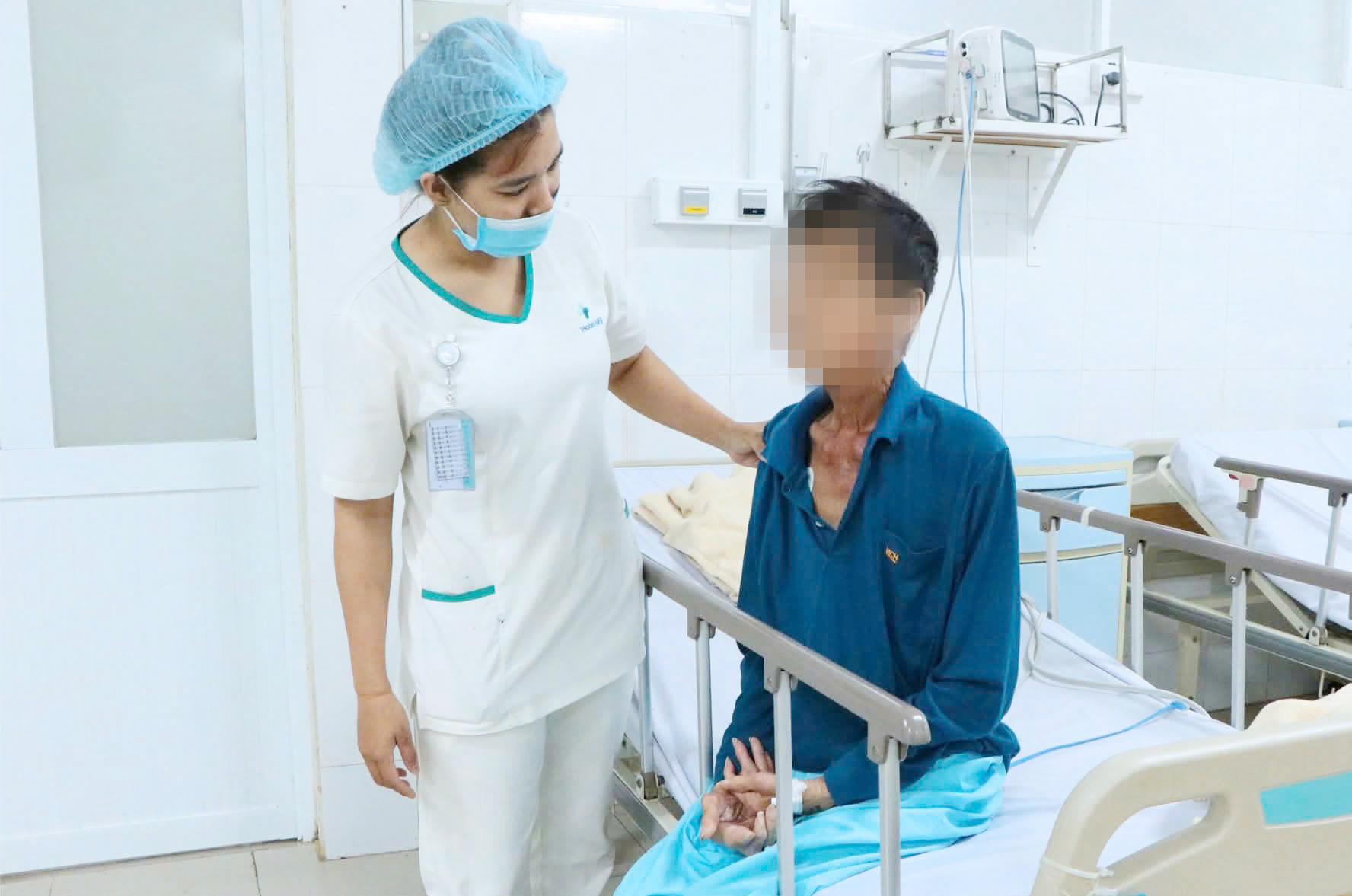 Nhân viên y tế Bệnh viện Hoàn Mỹ Bình Phước thăm hỏi sức khỏe bệnh nhân sau khi qua cơn nguy kịch.