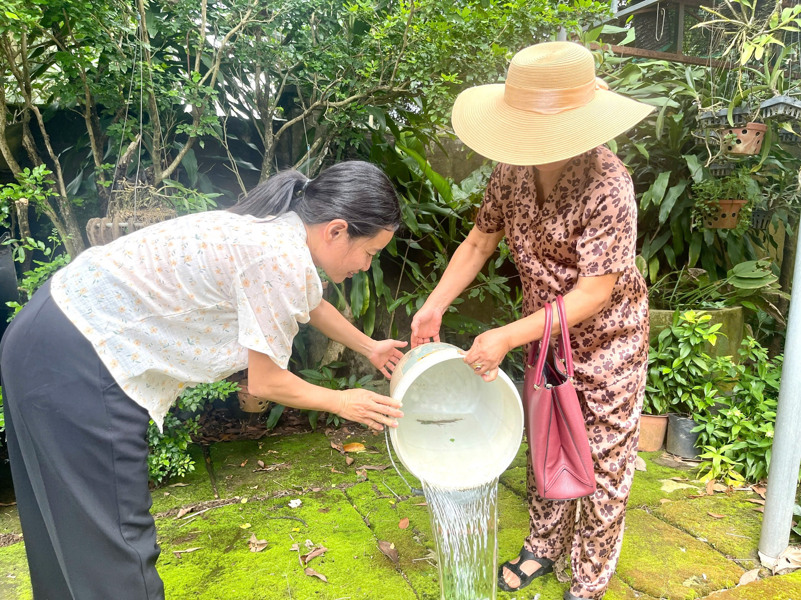 Người dân phường Bình Phước, tỉnh Đồng Nai dọn dẹp các dụng cụ chứa nước diệt lăng quăng phòng, chống SXH.