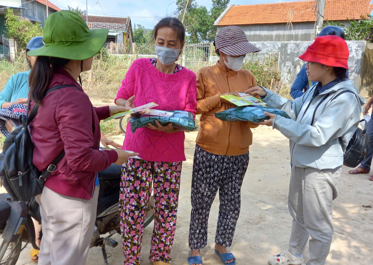 Nhân viên y tế CDC Đồng Nai phát tờ rơi tuyên truyền phòng dịch tả, côn trùng gây bệnh cho người dân.