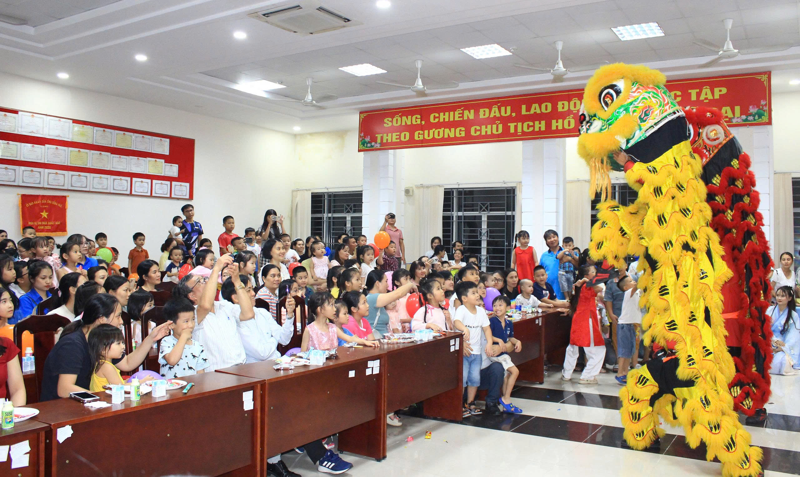 Tại chương trình, các em được xem múa lân, chơi các trò chơi dân gian có thưởng như: Đố vui, đá bóng bay, đua ghế, ép bong bóng, cử chỉ điệu bộ và bắc ghế lên cung trăng.