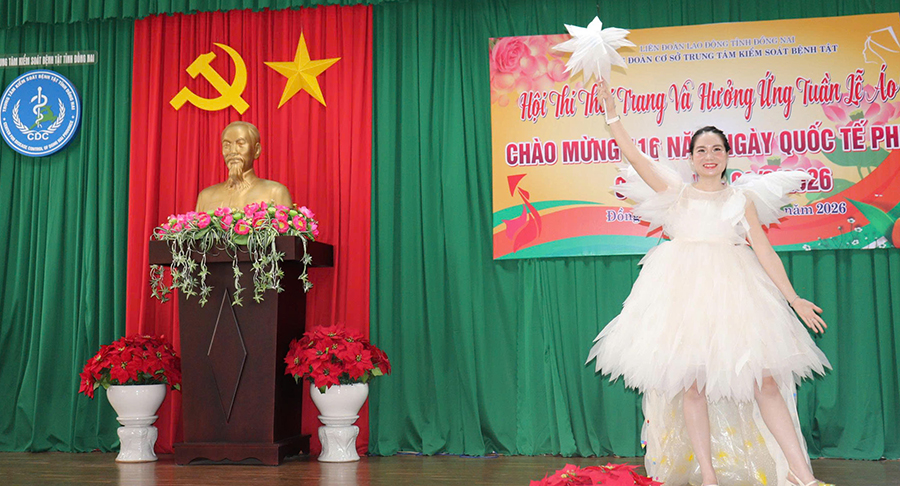 Chiều ngày 6-3,Công đoàn cơ sở Trung tâm Kiểm soát bệnh tật tỉnh Đồng Nai tổ chức hội thi thời trangvà hưởng ứng tuần lễ áo dài chào mừng kỷ niệm 116 năm Ngày Quốc tế Phụ nữ 8/3 (1910–2026). Tham dự buổi lễ có Ban Giám đốc trung tâm cùng toàn thể viên chức, người lao động của đơn vị.
