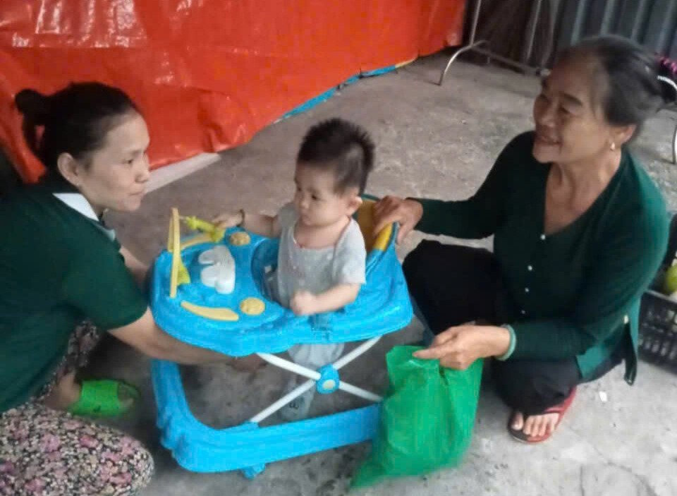CTV Nguyễn Thị Nhân thăm hộ gia đình có con nhỏ tại thôn Cây Da, xã Phú Nghĩa.