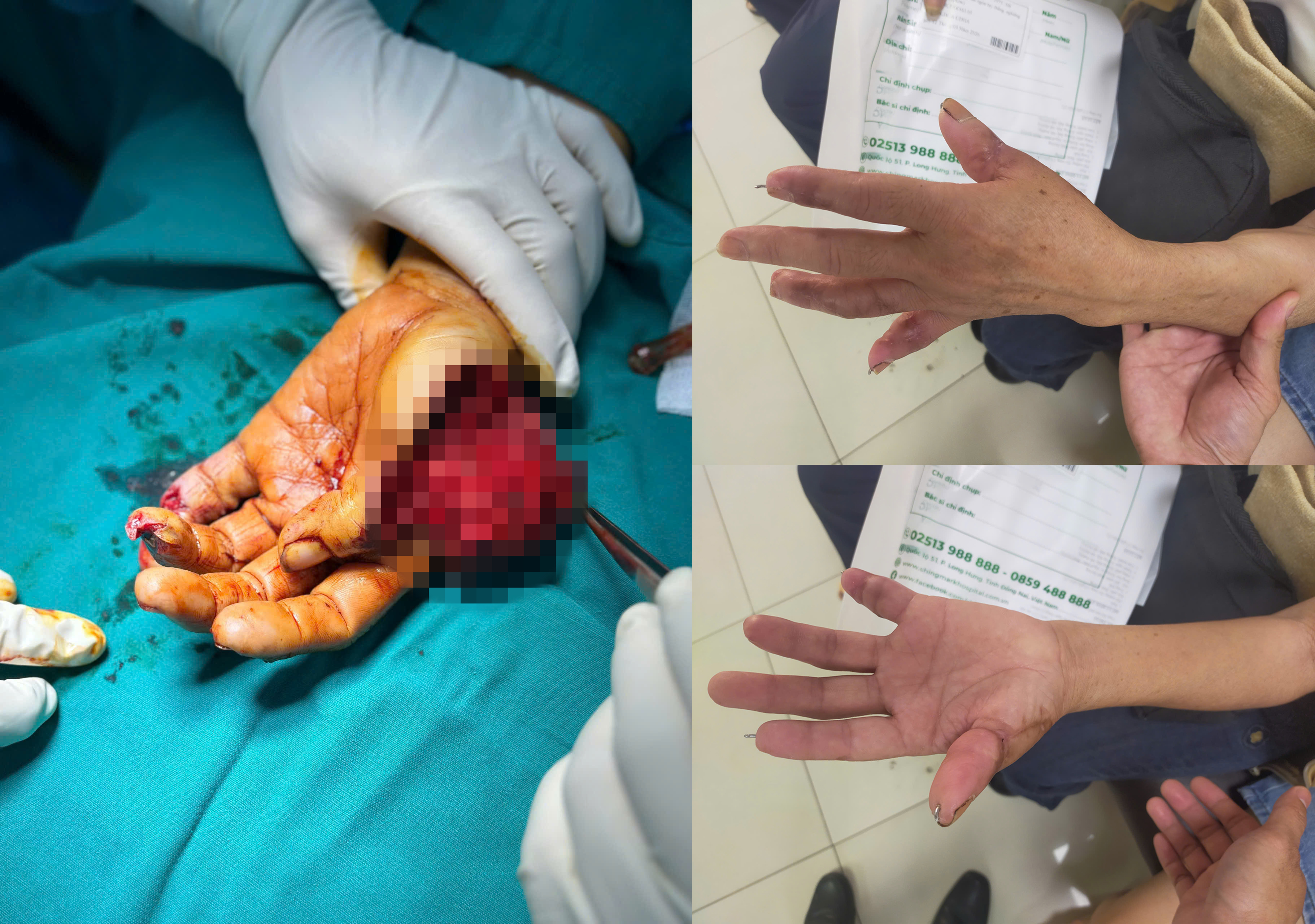 Hình ảnh bàn tay bệnh nhân X. trước và sau phẫu thuật.