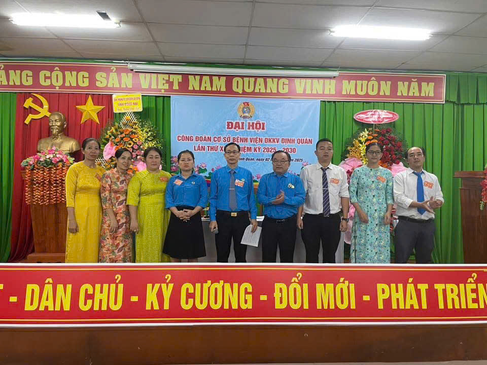 Chiều 2-12, Công đoàn cơ sở Bệnh viện ĐKKV Định Quán tổ chức Đại hội lần thứ XIII, nhiệm kỳ 2025–2030. Tham dự Đại hội có đồng chí Trịnh Đức Thắng – Ủy viên BCH, Phó Ban Công tác Công đoàn, Liên đoàn Lao động tỉnh Đồng Nai; BS.CKII Tạ Quang Trí – Bí thư Đảng ủy, Giám đốc Bệnh viện; đại diện Đảng ủy, Ban Giám đốc, các tổ Công đoàn và 86 đoàn viên tiêu biểu đại diện hơn 360 đoàn viên công đoàn.