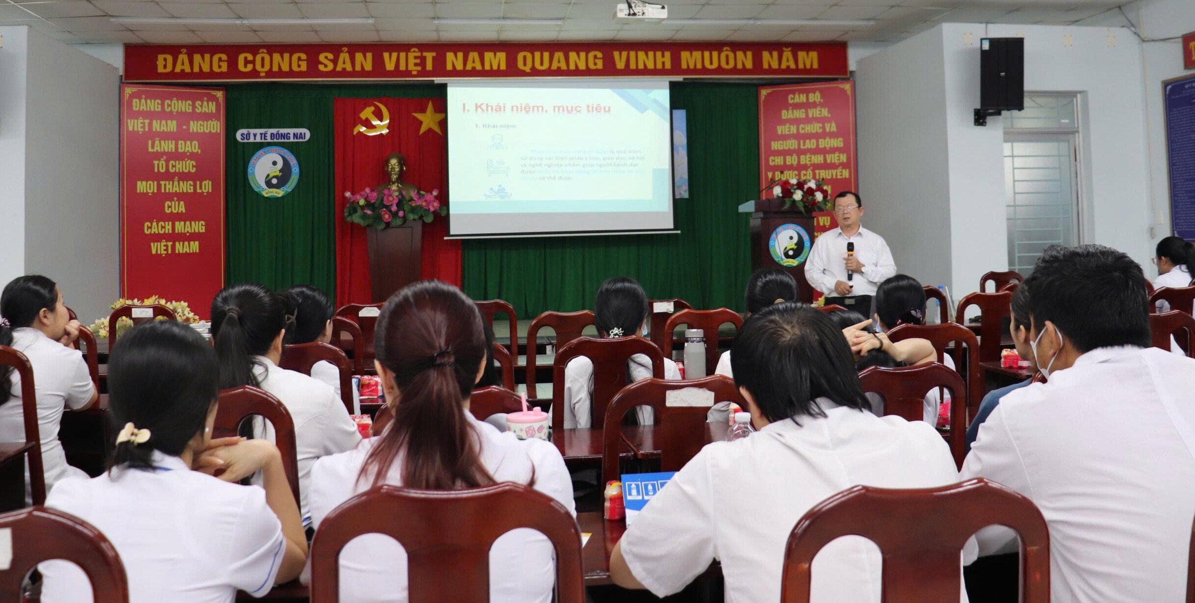 Chiều 29-10, Bệnh viện Y dược cổ truyền Đồng Nai đã tổ chức chương trình đào tạo liên tục cập nhật kiến thức chuyên môn cho nhân viên y tế năm 2025 với chuyên đề “Nâng cao hiệu quả công tác chăm sóc điều dưỡng trong phục hồi chức năng và quy định kỹ thuật tiêm an toàn trong cơ sở khám chữa bệnh”. Gần 100 học viên là bác sĩ, điều dưỡng, dược sĩ, kỹ thuật viên, y sĩ, hộ lý của bệnh viện đã tham gia chương trình.
