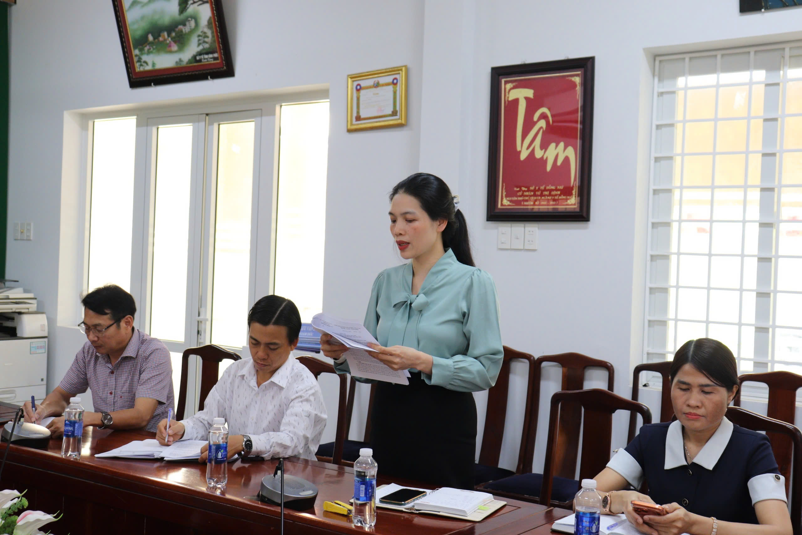 Bà Vũ Thị Huyền Trang – Phó Trưởng phòng Kế hoạch - Nghiệp vụ CDC Đồng Nai báo cáo kết quả thực hiện nhiệm vụ của hai khoa chuyên môn.