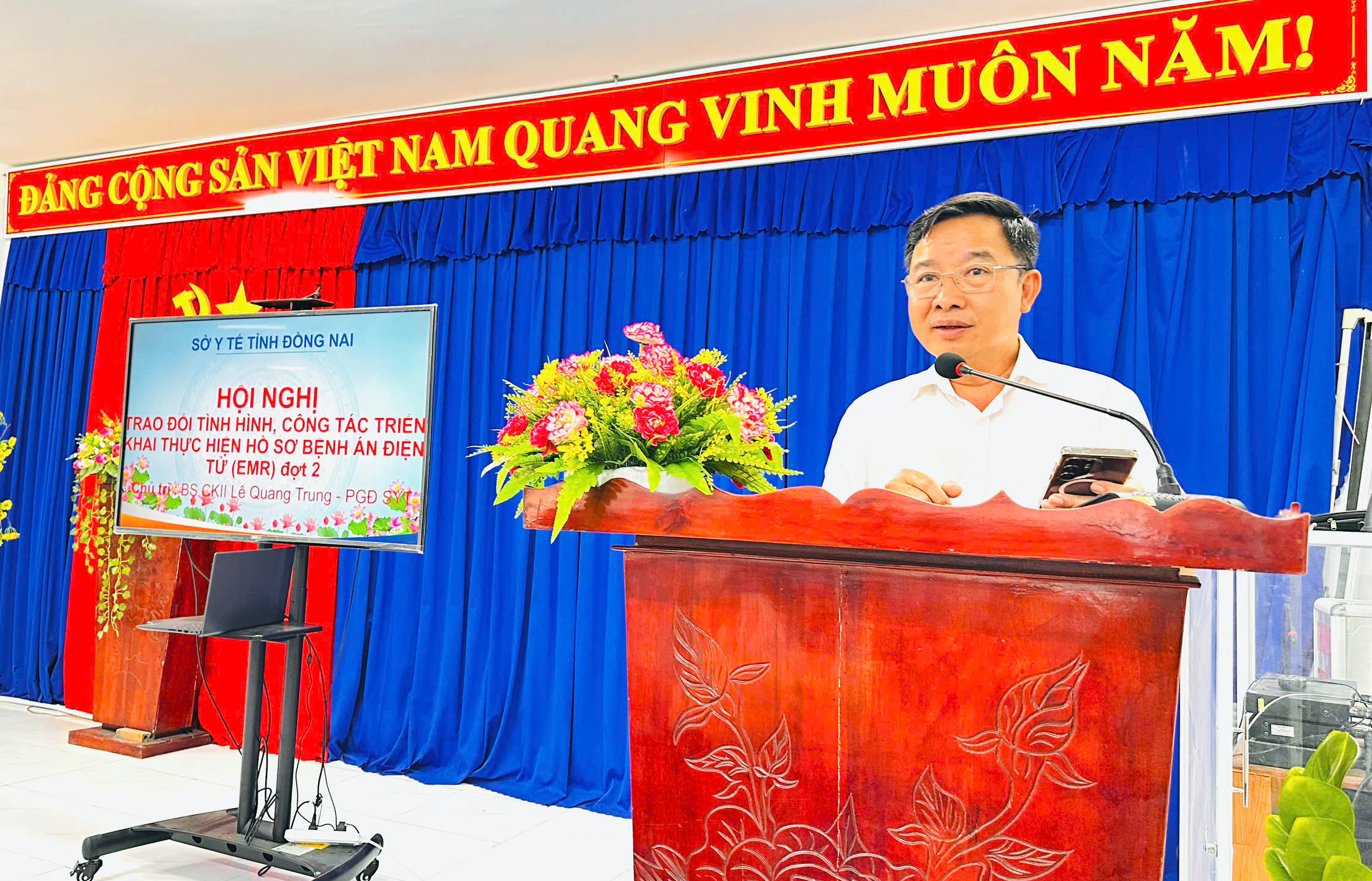 Tham dự hội nghị có BS.CKII Lê Quang Trung - Phó giám đốc Sở Y tế; đại diện các phòng chuyên môn thuộc Sở; lãnh đạo các Trung tâm Y tế khu vực Đồng Phú, Chơn Thành, Bù Đốp, Hớn Quản; cùng đại diện đơn vị VNPT, Viettel Đồng Nai và các bộ phận phụ trách công nghệ thông tin, đấu thầu của các đơn vị.