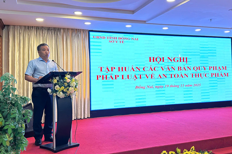 Phát biểu khai mạc, BS CKII Trần Minh Tám Trưởng phòng An toàn thực phẩm, Sở Y tế Đồng Nai nhấn mạnh: “An toàn thực phẩm là lĩnh vực tác động trực tiếp đến sức khỏe nhân dân, niềm tin xã hội và sự phát triển kinh tế - xã hội của địa phương. Trong bối cảnh sắp xếp đơn vị hành chính, đội ngũ cán bộ phụ trách an toàn thực phẩm có nhiều biến động, việc cập nhật kiến thức, nâng cao năng lực là yêu cầu bắt buộc để đáp ứng nhiệm vụ mới.”