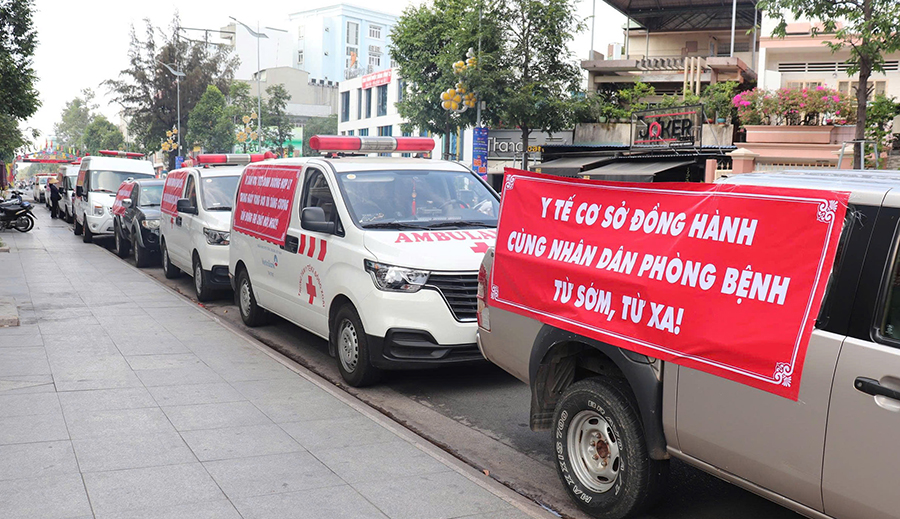 Đoàn xe diễu hành mang theo các thông điệp về chủ động chăm sóc sức khỏe.
