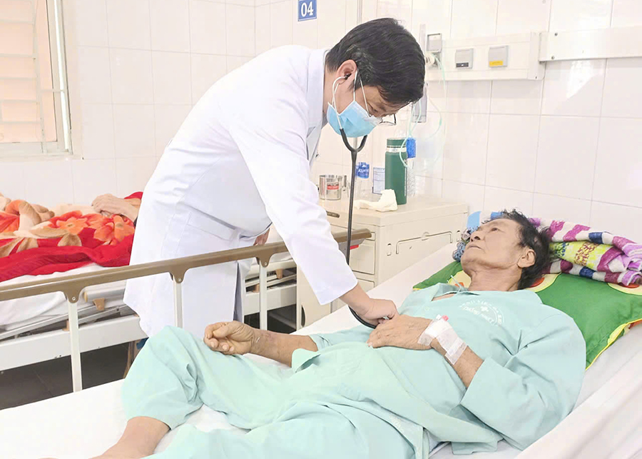 Bác sĩ Bệnh viện ĐK Thống Nhất thăm khám cho một bệnh nhân sau khi được can thiệp tim mạch thành công.