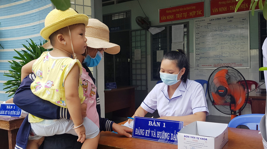 Người dân đăng ký chích ngừa vắc xin cho trẻ tại Trạm y tế trên địa bàn TP. Biên Hòa.