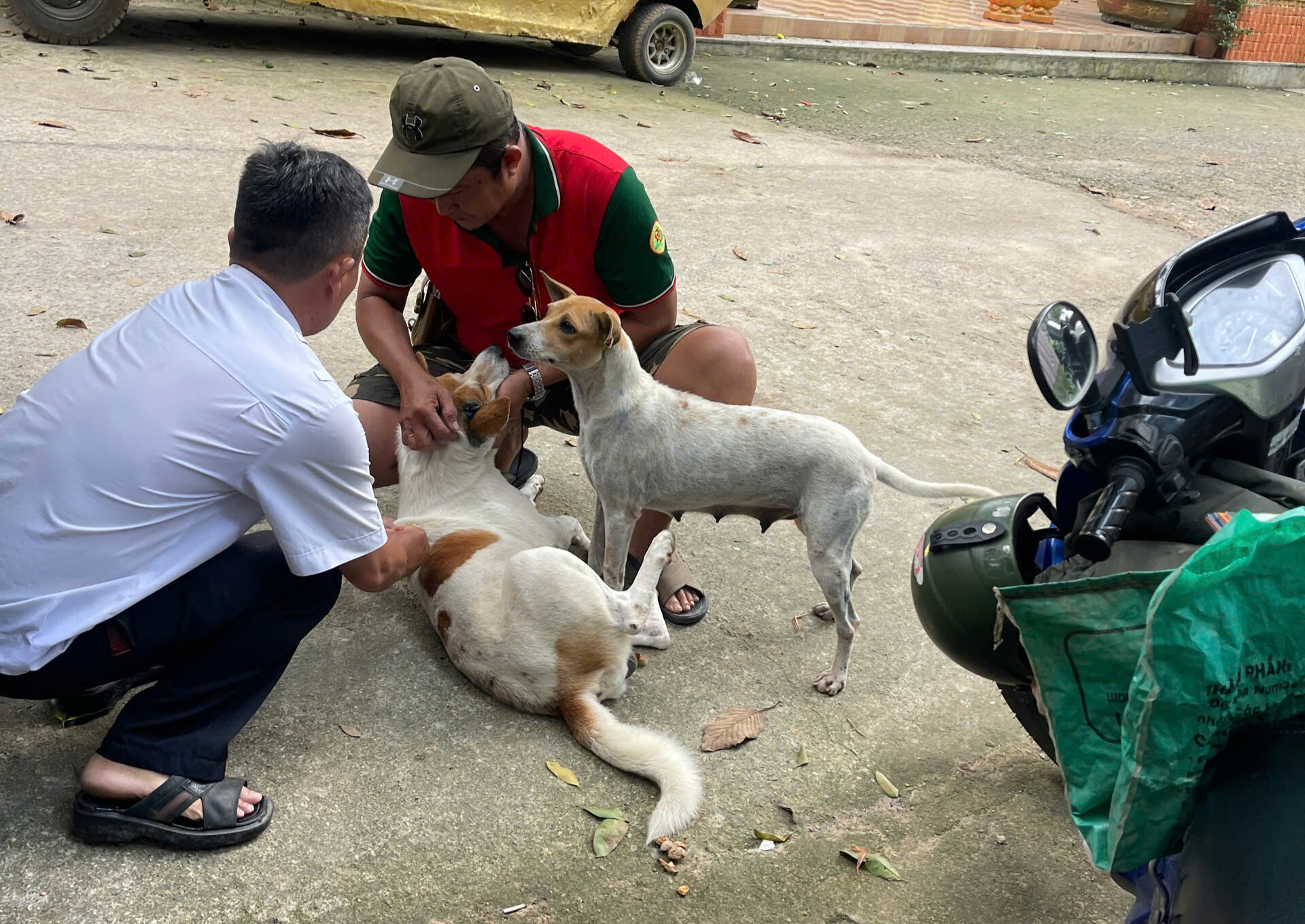 UBND phường Phước Tân triển khai tiêm vắc xin phòng bệnh dại cho đàn chó trong Thiền viện Phước Sơn