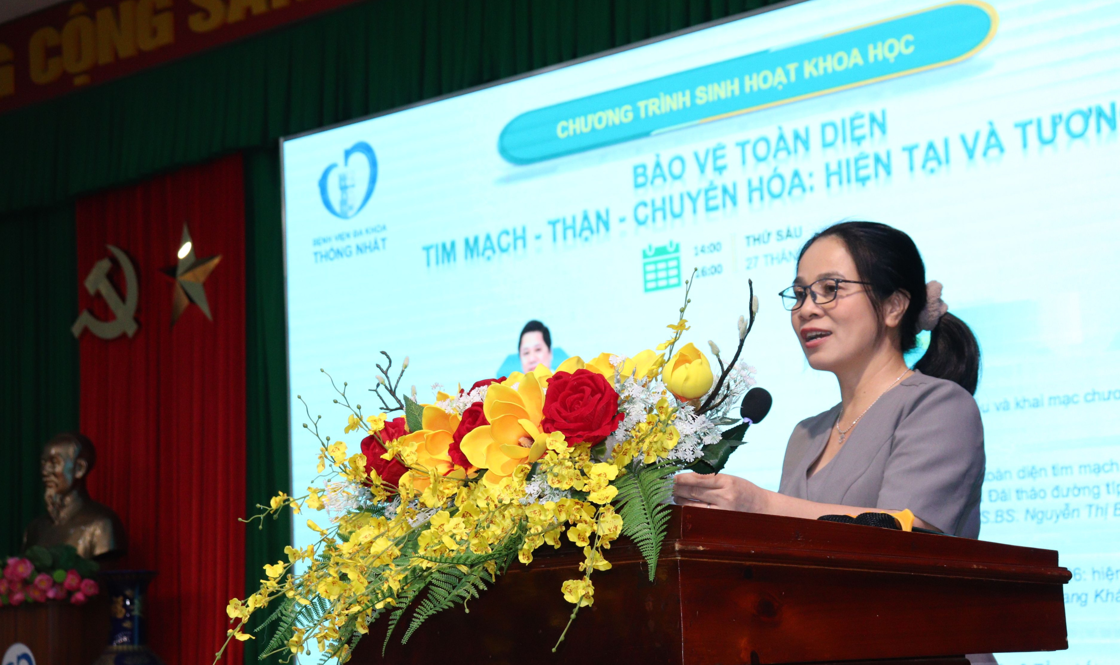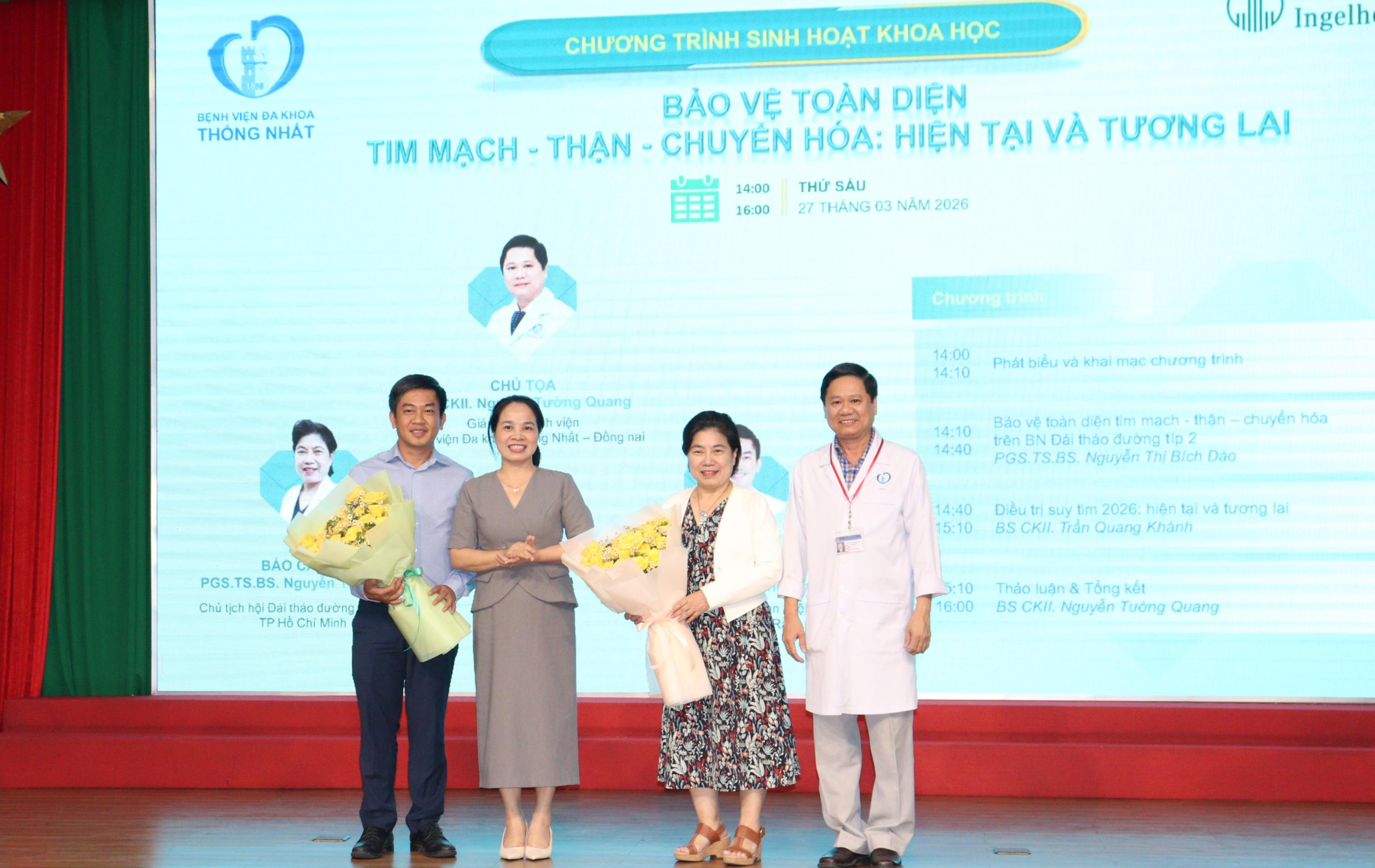 Ngày 27-3vừa qua, Bệnh viện ĐK Thống Nhất (Đồng Nai) tổ chức hội thảo chuyên đề "Bảo vệ toàn diện tim mạch – thận – chuyển hóa: hiện tại và tương lai", với sự tham dự của TTƯT.BS.CKII Đỗ Thị Nguyên - Giám đốc Sở Y tế Đồng Nai ; PGS.TS.BS Nguyễn Thị Bích Đào, Chủ tịch Hội Đái tháo đường - Nội tiết TP.HCM; BS.CKII Trần Quang Khánh, Khoa Tim mạch can thiệp, Bệnh viện Chợ Rẫy cùng đông đảo y, bác sĩ, nhân viên y tế của bệnh viện.