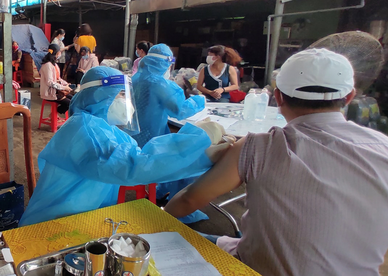 Trung tâm Y tế TP.Long Khánh tiêm vắc xin Sinopharm cho cơ sở nước chấm Hoa Sen (Phường Suối Tre).
