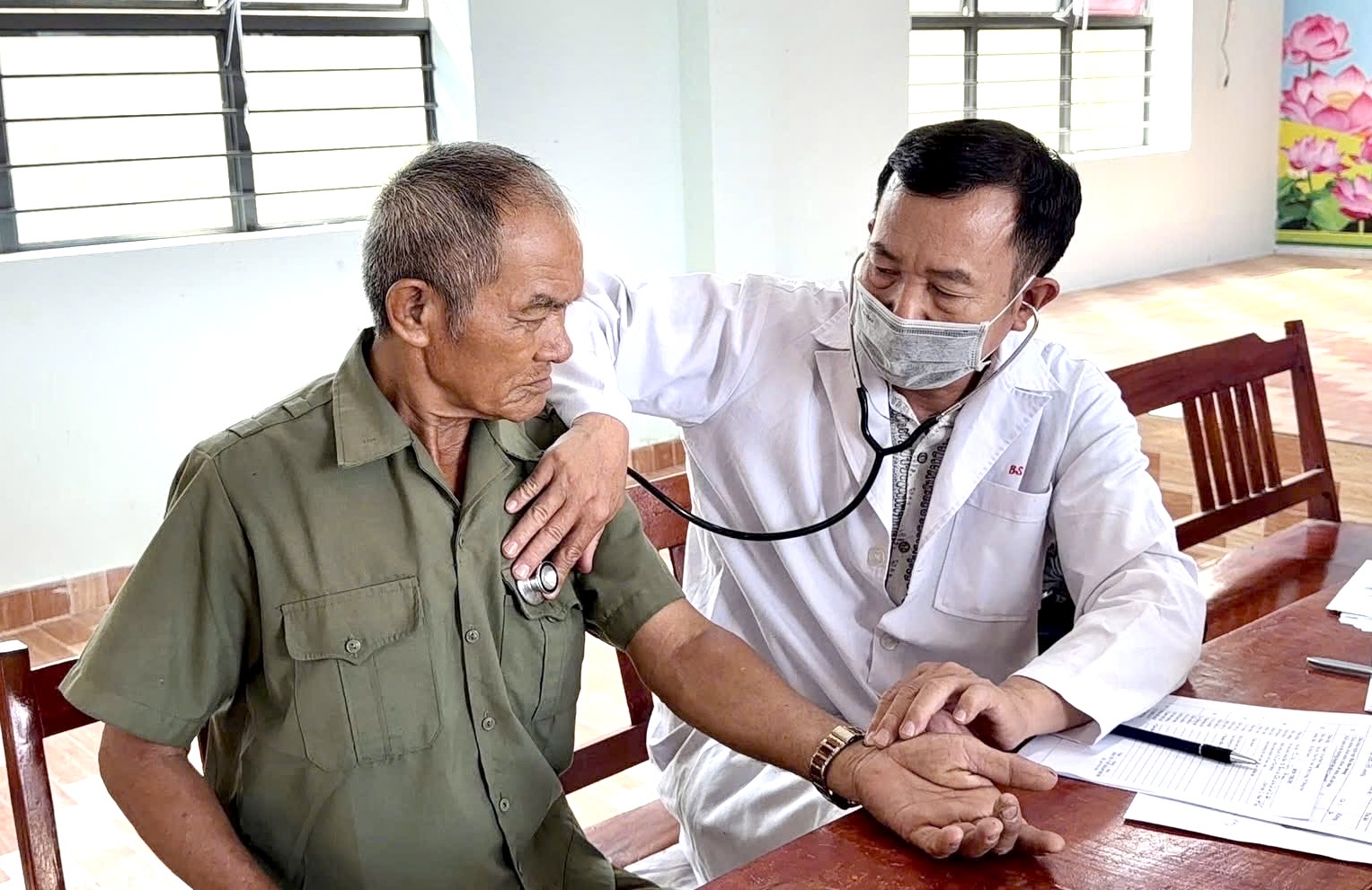 Bác sĩ khám bệnh cho một người dân.