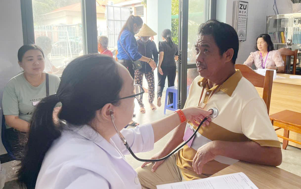 Bác sĩ khám sàng lọc sức khỏe cho một NCT trên địa bàn khu vực Long Khánh.