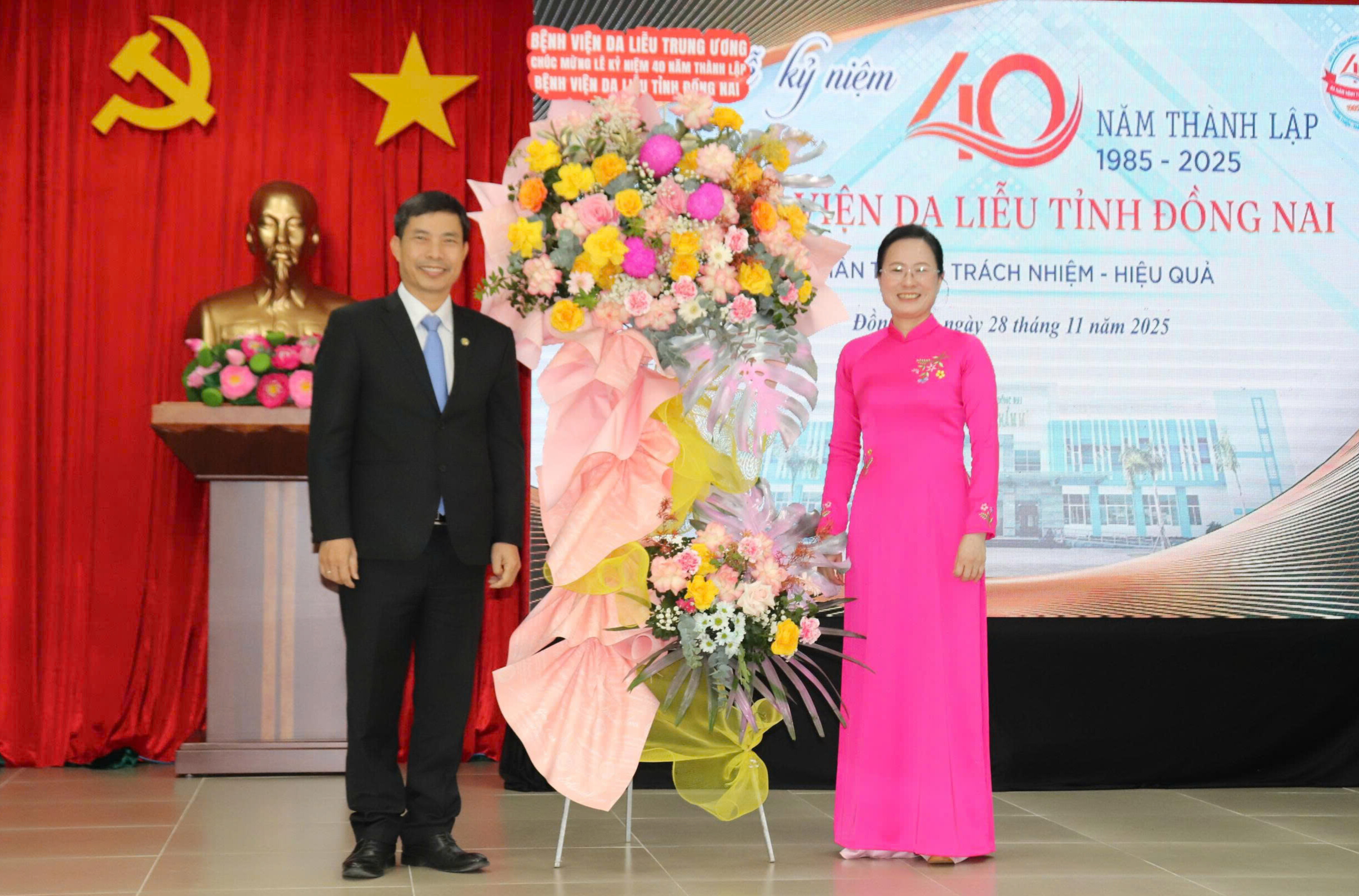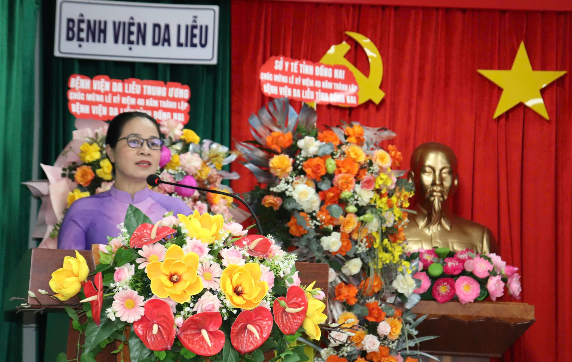 Phát biểu tại buổi lễ, Giám đốc Sở Y tế Đồng Nai Đỗ Thị Nguyên ghi nhận và biểu dương những nỗ lực, thành tựu mà bệnh viện đã đạt được trong 40 năm qua. Cụ thể, năm 2024, Đồng Nai đã đạt chuẩn loại trừ bệnh phong cấp huyện; phát triển chuyên môn kỹ thuật, công nghệ bắt kịp xu thế đổi mới và có nhiều tiến bộ trong công tác chuyển đổi số và quản lý bệnh viện.