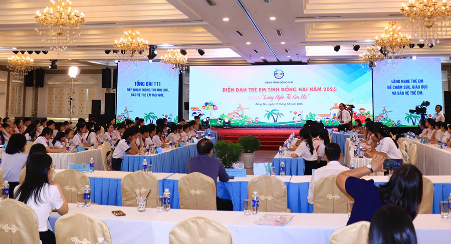 UBND tỉnh Đồng Nai vừa tổ chức Diễn đàn Trẻ em năm 2025 với chủ đề “Lắng nghe trẻ em nói”. Tham dự có 144 đại biểu đại diện cho trẻ em trên toàn tỉnh cùng 48 cán bộ phụ trách công tác trẻ em và đại diện các cơ sở bảo trợ xã hội công lập, ngoài công lập.