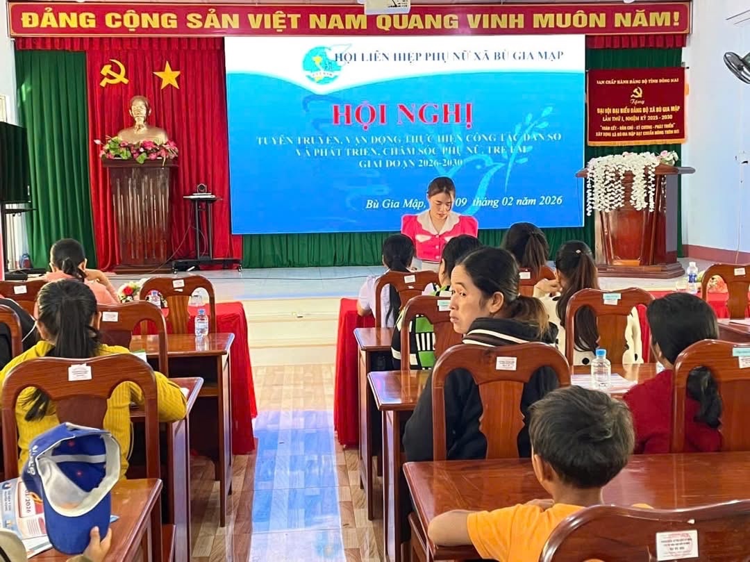 Vừa qua, Trạm Y tế xã Bù Gia Mập (khu vực Bù Gia Mập) phối hợp với Hội Liên hiệp Phụ nữ xã tổ chức hội nghị tuyên truyền công tác dân số và phát triển, chăm sóc sức khỏe phụ nữ, trẻ em năm 2026 cho 30 cộng tác viên dân số, y tế thôn, bản và hội viên phụ nữ các chi hội trên địa bàn xã.