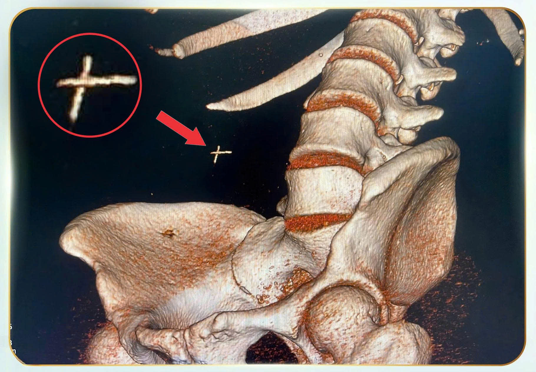 Qua thăm khám kết hợp chụp cắt lớp vi tính (MSCT 160 lát cắt), các bác sĩ phát hiện hai dị vật dạng que, kích thước khoảng 13–15mm, đã đâm xuyên qua thành đại tràng. Xác định tình huống nguy hiểm, nguy cơ gây viêm nhiễm ổ bụng, thậm chí dẫn đến biến chứng nặng nếu không can thiệp kịp thời. Rạng sáng ngày 6-4, ê-kíp đã tiến hành phẫu thuật nội soi cấp cứu lấy dị vật ra khỏi ổ bụng và xử lý vị trí tổn thương đường tiêu hóa.