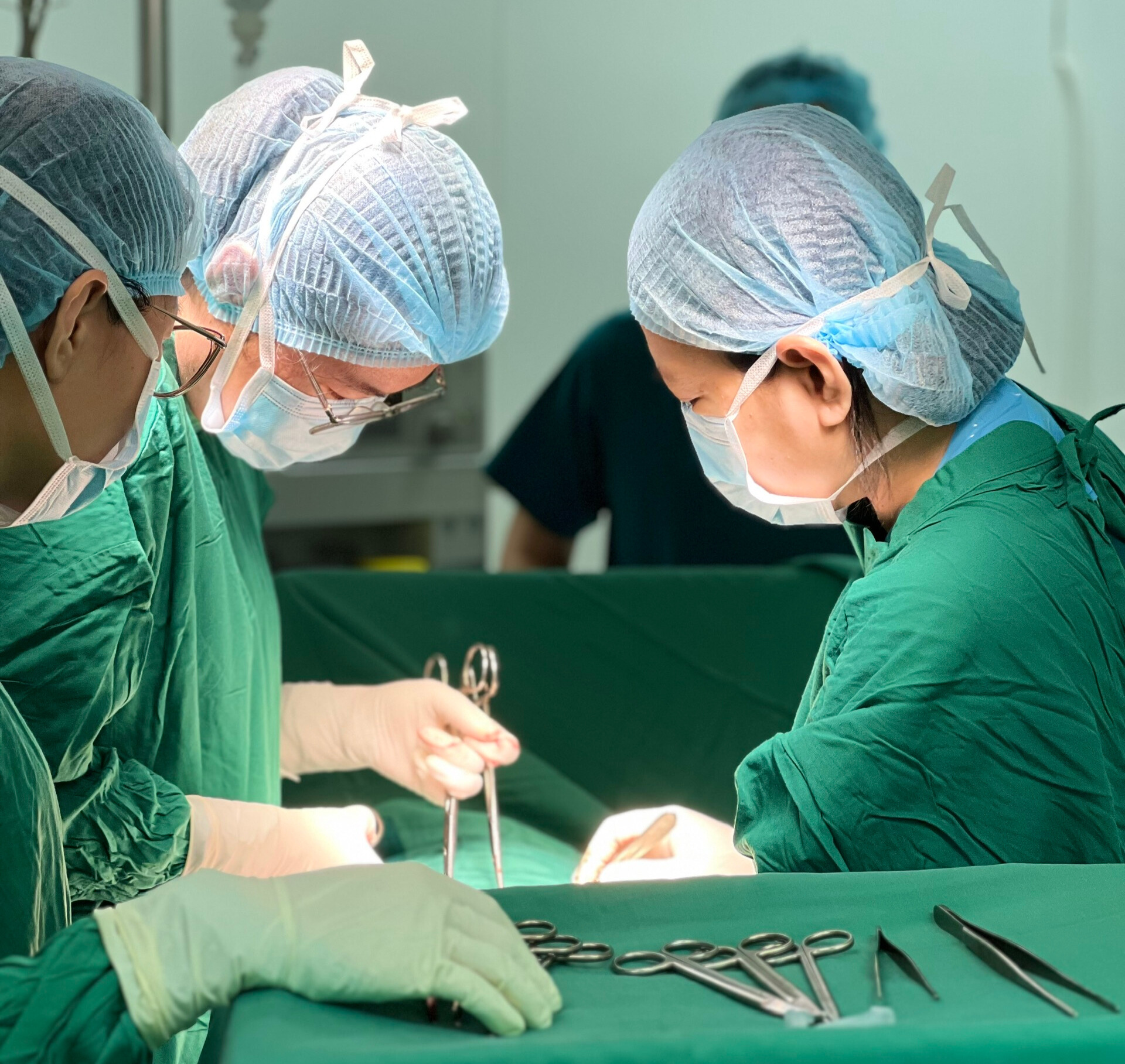 Các bác sĩ tiến hành phẫu thuật cho bệnh nhân.