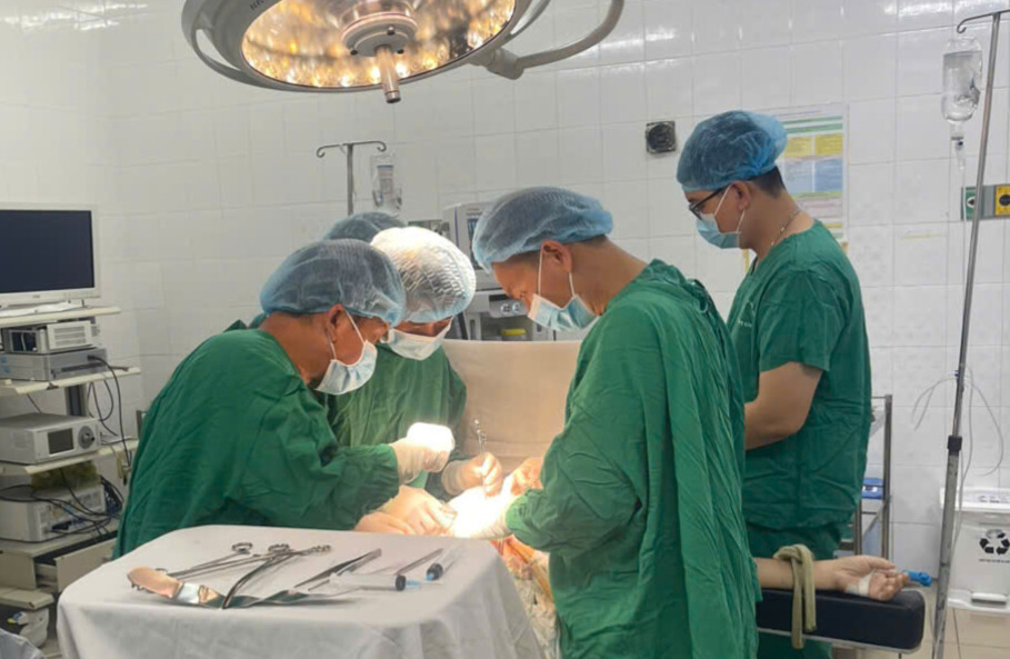 Ê kíp đang thực hiện phẫu thuật cho bệnh nhân