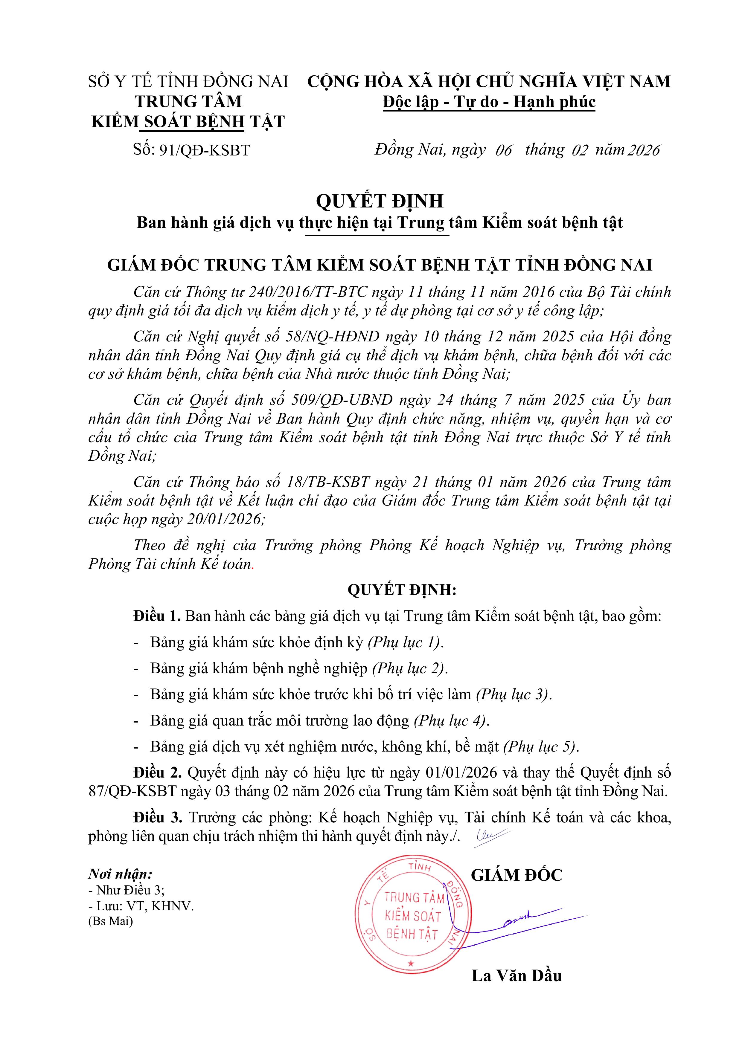 Tải file Quyết định ban hành bảng giá tại đây: Ban hành giá DV tại TT.pdf