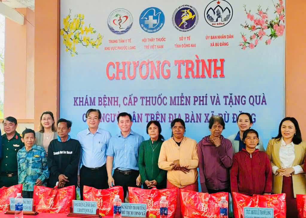 Nội dung Kế hoạch cũng chú trọng đến công tác chăm sóc, quan tâm sức khỏe vùng đồng bào dân tộc thiểu số. Trong ảnh: Hội Thầy thuốc trẻ Việt Nam phối hợp với Sở Y tế Đồng Nai tặng quà cho người dân, người đồng bào dân tộc có hoàn cảnh khó khăn trên địa bàn xã Bù Đăng.