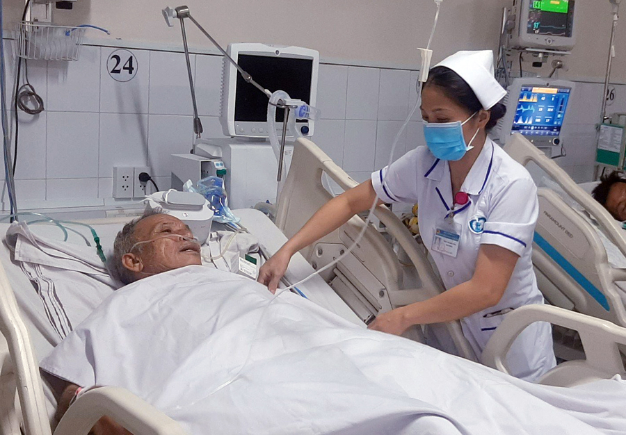 ĐD Nguyễn Thị Kim Thoa đang chăm sóc bệnh nhân tại Khoa HSTCCĐ Bệnh viện ĐK Thống Nhất.