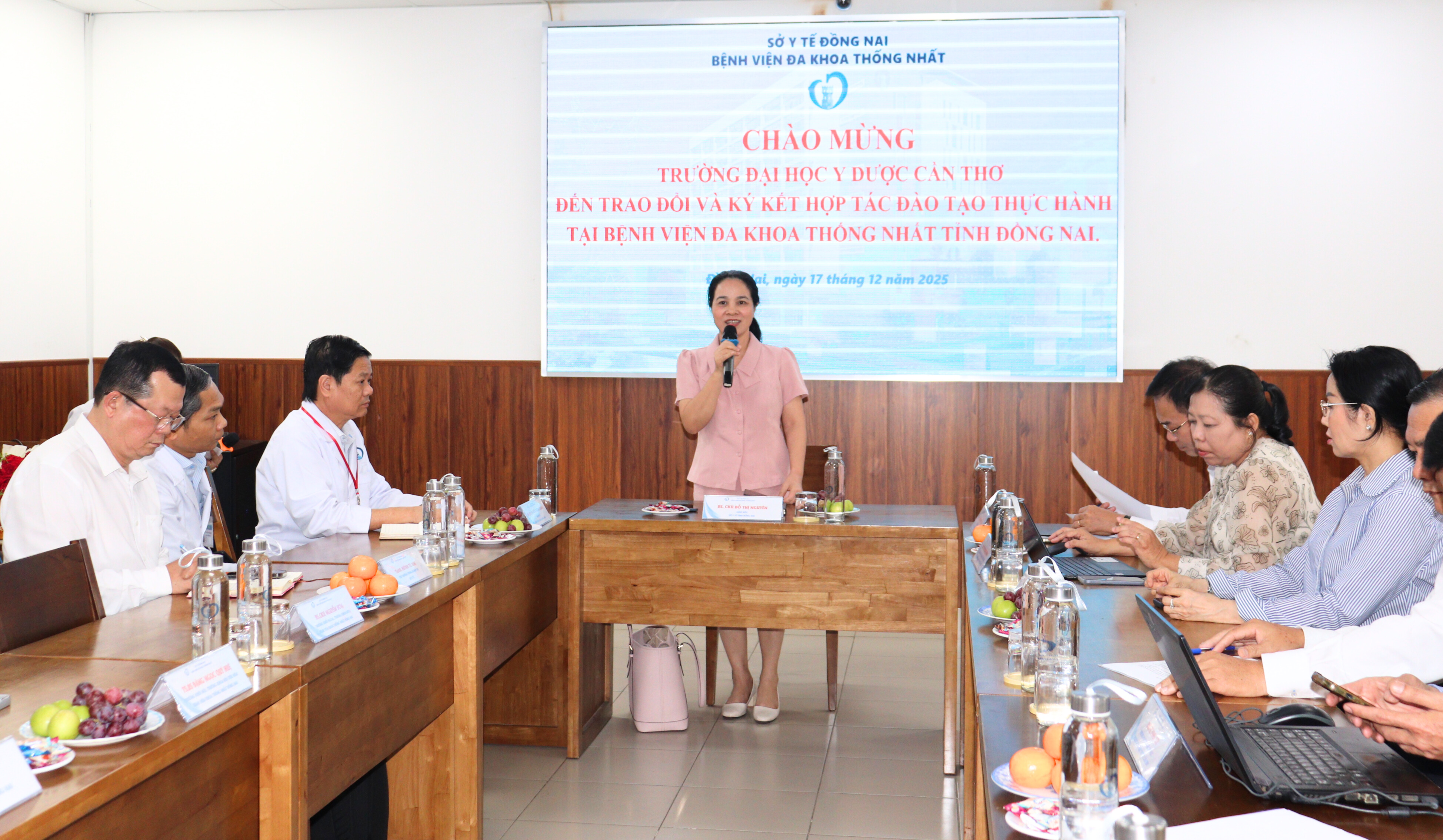 Phát biểu tại buổi làm việc, BS.CKII Đỗ Thị Nguyên cho biết, việc hợp tác với Trường Đại học Y Dược Cần Thơ là cơ hội để đội ngũ bác sĩ của tỉnh Đồng Nai và nhà trường trao đổi kinh nghiệm, nâng cao năng lực chuyên môn và giảng dạy, đồng thời tạo điều kiện cho sinh viên của Trường về thực hành tại các cơ sở y tế trên địa bàn tỉnh.