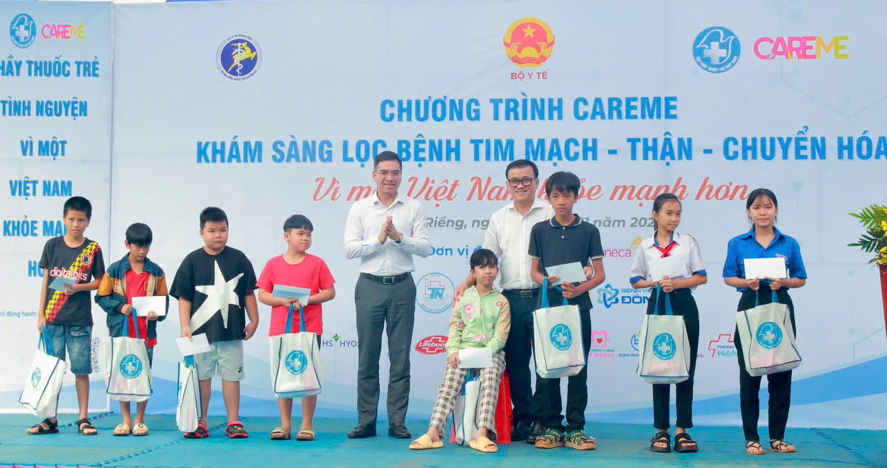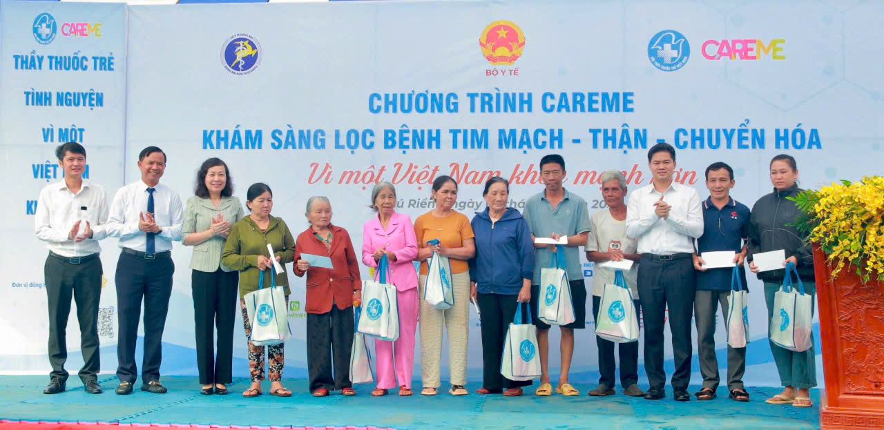 Sáng 2-11, tại Trung tâm Văn hóa xã Phú Riềng (tỉnh Đồng Nai), Bộ Y tế phối hợp Hội Thầy thuốc trẻ Việt Nam và Sở Y tế Đồng Nai tổ chức Chương trình CAREME – Khám sàng lọc bệnh tim mạch, thận, chuyển hóa, tư vấn sức khỏe, cấp thuốc miễn phí và tặng quà cho người dân địa phương.