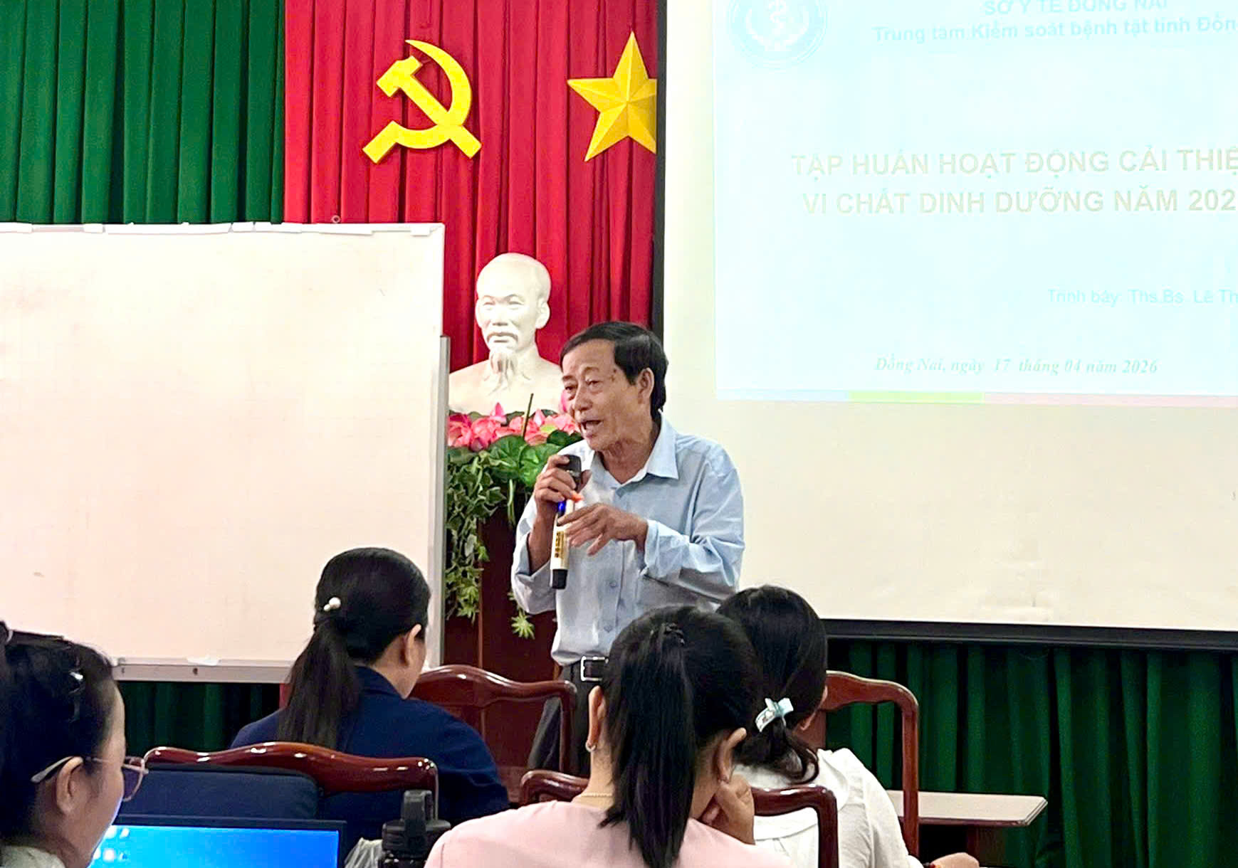 Sáng 17-4, tại cơ sở 2 Trung tâm Kiểm soát bệnh tật (CDC) tỉnh Đồng Nai, CDC Đồng Nai tổ chức lớp tập huấn hoạt động cải thiện vi chất dinh dưỡng năm 2026 cho 40 chuyên trách chương trình Vitamin A tại các trạm y tế xã, phường khu vực Bình Phước (cũ).