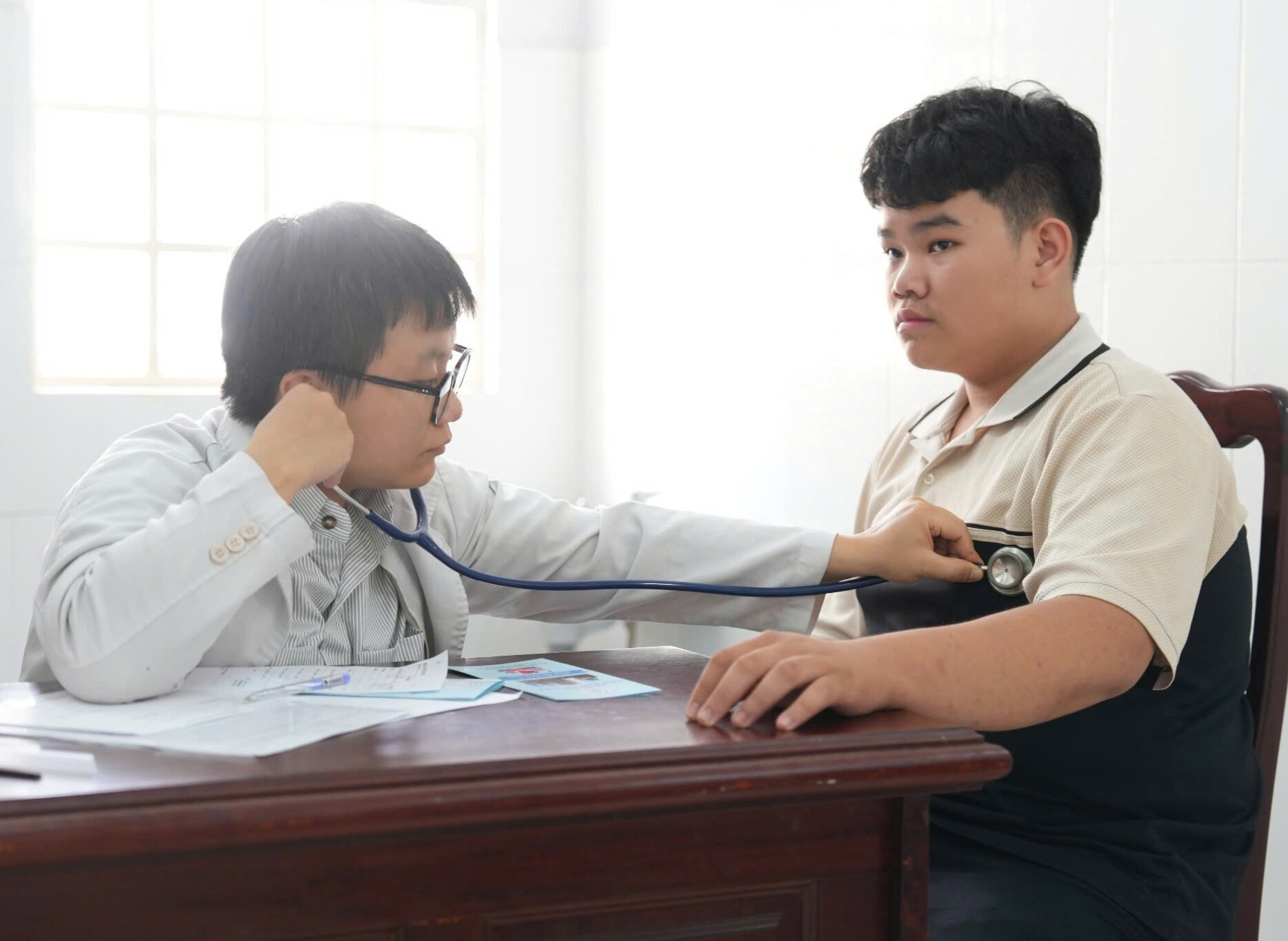 Bác sĩ khám bệnh cho trẻ dưới 18 tuổi.