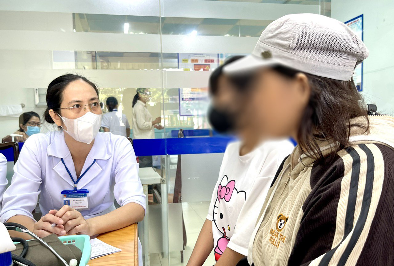 Bác sĩ Vũ Thị Thúy Hà, Phòng tiêm chủng cơ sở 2, CDC Đồng Nai khám và tư vấn về lợi ích của vắc xin HPV cho người dân.