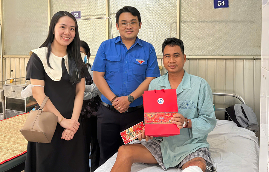Đại diện bệnh viện và đoàn thanh niên tặng quà tết cho bệnh nhân