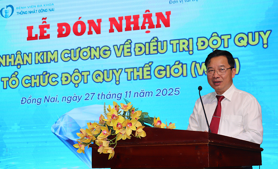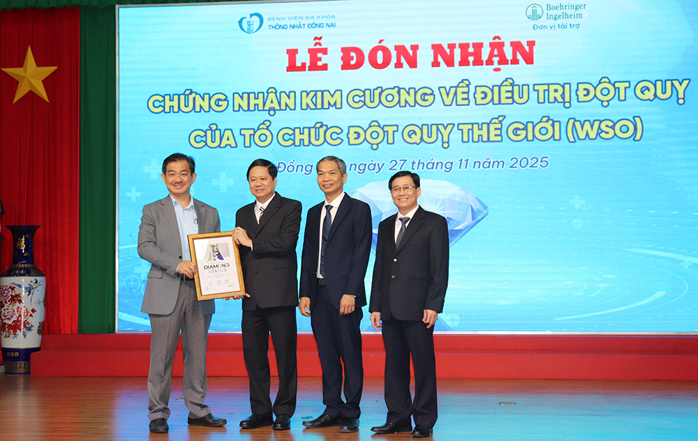 Sáng 27-11, Bệnh viện ĐK Thống Nhất (Đồng Nai) tổ chức Lễ công bố đón nhận Chứng nhận Kim cương trong điều trị đột quỵ của Hội Đột quỵ thế giới (WSO). Đây là bệnh viện thứ 2 của Đồng Nai đạt chứng nhận cao nhất trong điều trị đột quỵ.