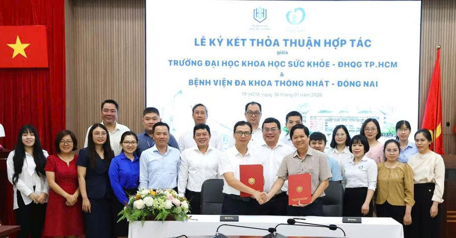 Vừa qua, tại TP.Hồ Chí Minh, Trường Đại học Khoa học Sức khỏe – Đại học Quốc gia TP.HCM và Bệnh viện ĐK Thống Nhất tỉnh Đồng Nai đã tổ chức lễ ký kết thỏa thuận hợp tác trong lĩnh vực đào tạo, nghiên cứu khoa học và thực hành lâm sàng.