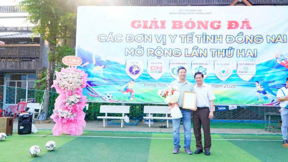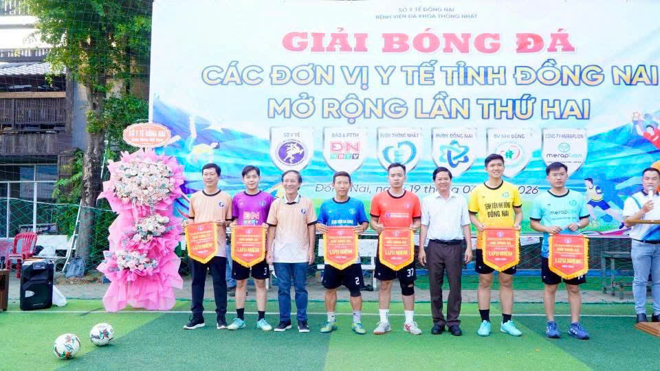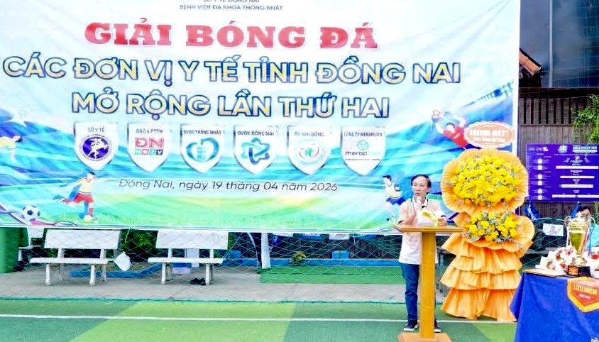 Sáng 19-4, tại Sân bóng đá TAVICO Gỗ Tây (phường Long Bình, tỉnh Đồng Nai) Bệnh viện Đa khoa Thống Nhất phối hợp với Công ty Meraplion tổ chức Giải bóng đá các đơn vị y tế Đồng Nai mở rộng lần thứ II năm 2026