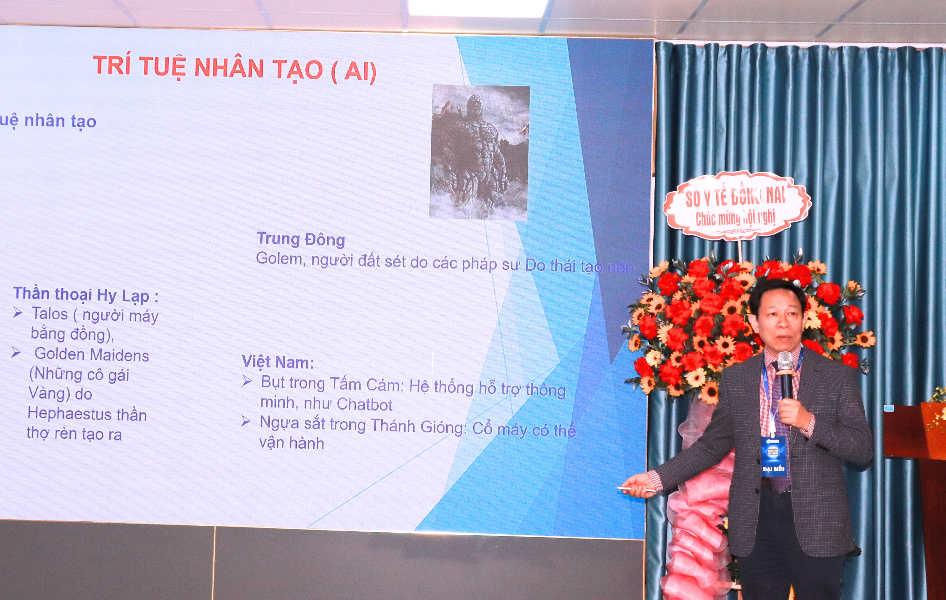 PGS.TS.BS Lê Đình Khánh, Phó giám đốc Bệnh viện Trường Đại học Y Dược Huế, Chủ tịch Hội Tiết niệu – Thận học Việt Nam chia sẻ đề tài “Trí tuệ nhân tạo áp dụng trong y học” tại hội nghị.