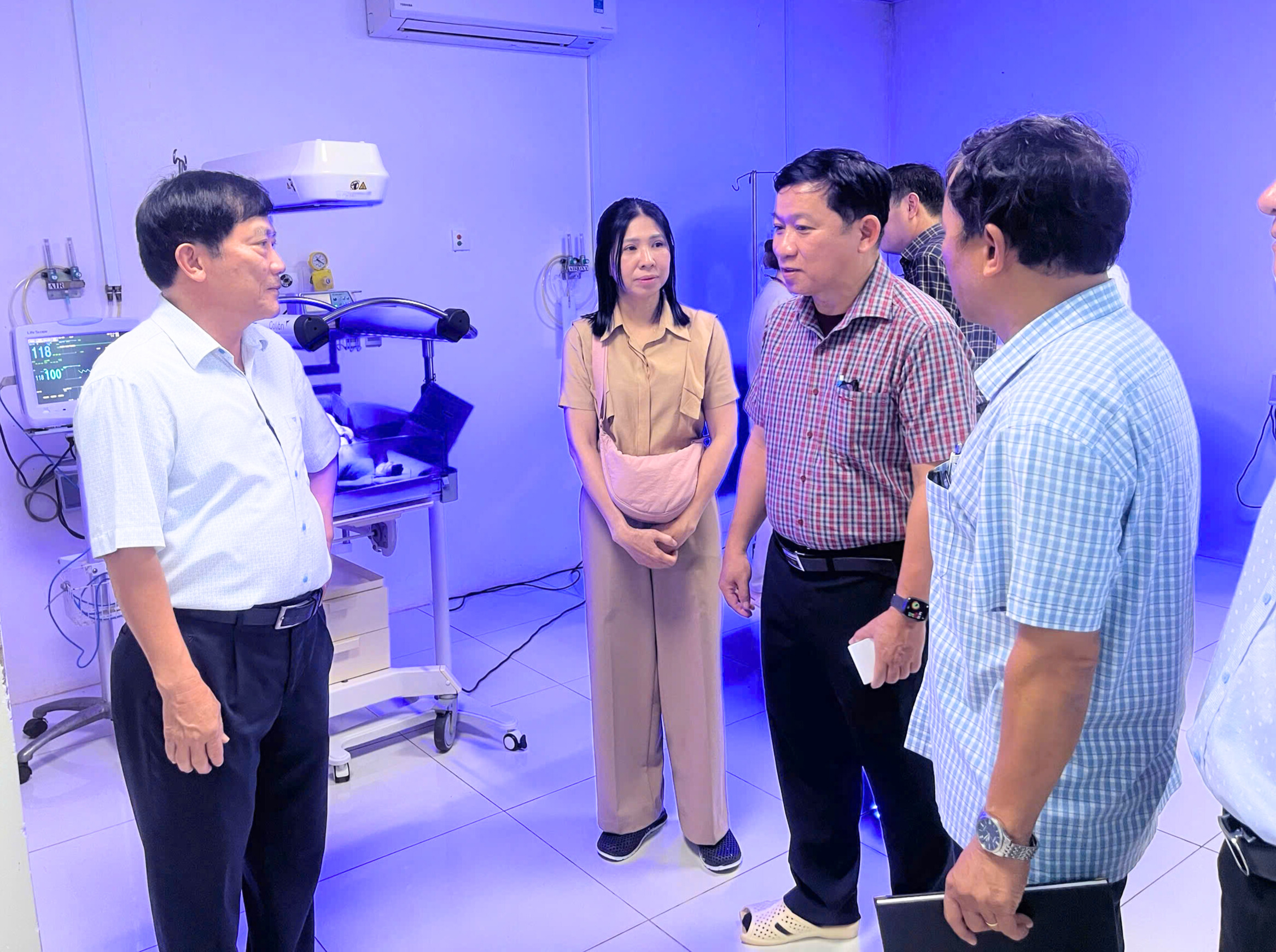 Đoàn công tác đã tham quan, khảo sát thực tế cơ sở vật chất, trang thiết bị và hoạt động khám chữa bệnh tại khoa Nhi. Nội dung khảo sát tập trung vào việc đánh giá hạ tầng điều trị nội trú, ngoại trú; quy trình tiếp nhận, khám và điều trị bệnh nhân nhi; cũng như sự phối hợp giữa khoa Sản và khoa Nhi trong chăm sóc, điều trị trẻ sơ sinh, sản phụ sau sinh.