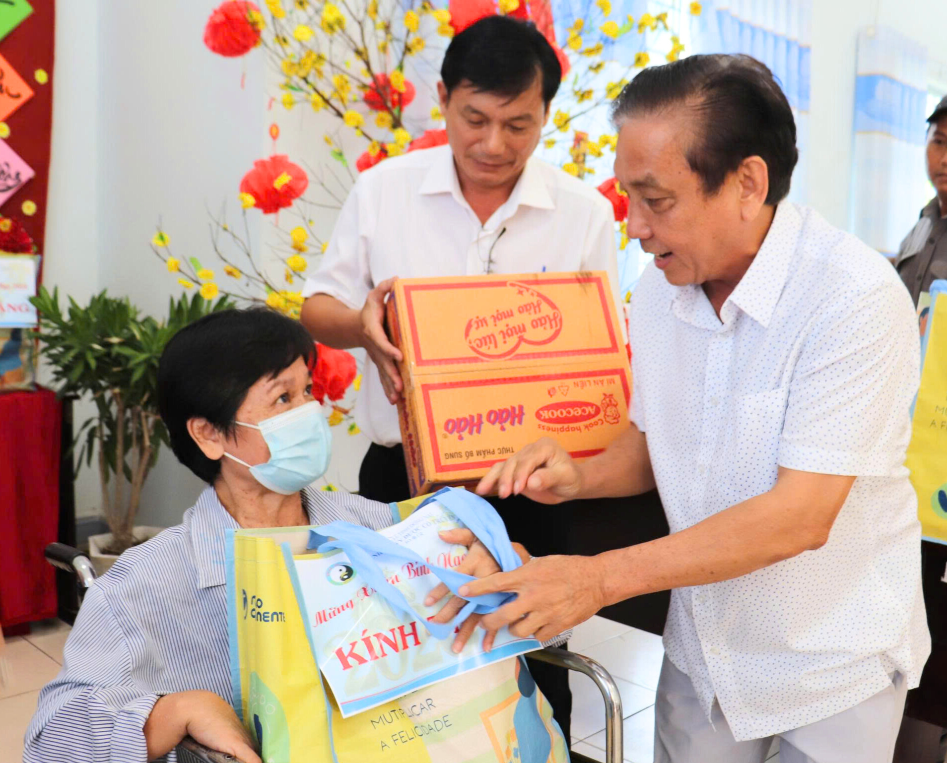 Đại diện Ban Giám đốc và các nhân viên bệnh viện tặng quà cho các bệnh nhân.