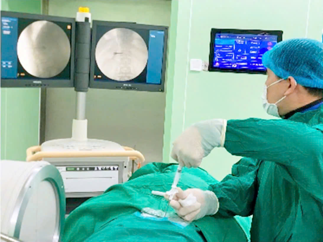 Cụ bà được gây tê tại chỗ trong khoảng 30 phút. Qua kim dẫn chuyên dụng, xi măng sinh học được đưa vào thân đốt sống, nhằm khôi phục độ vững của cột sống và giảm áp lực lên các cấu trúc thần kinh. Sau phẫu thuật, cụ bà giảm đau rõ rệt, có thể ngồi dậy và bắt đầu vận động sớm, đồng thời hạn chế sử dụng thuốc giảm đau liều mạnh – nhóm thuốc có thể gây nhiều tác dụng phụ ở người cao tuổi.