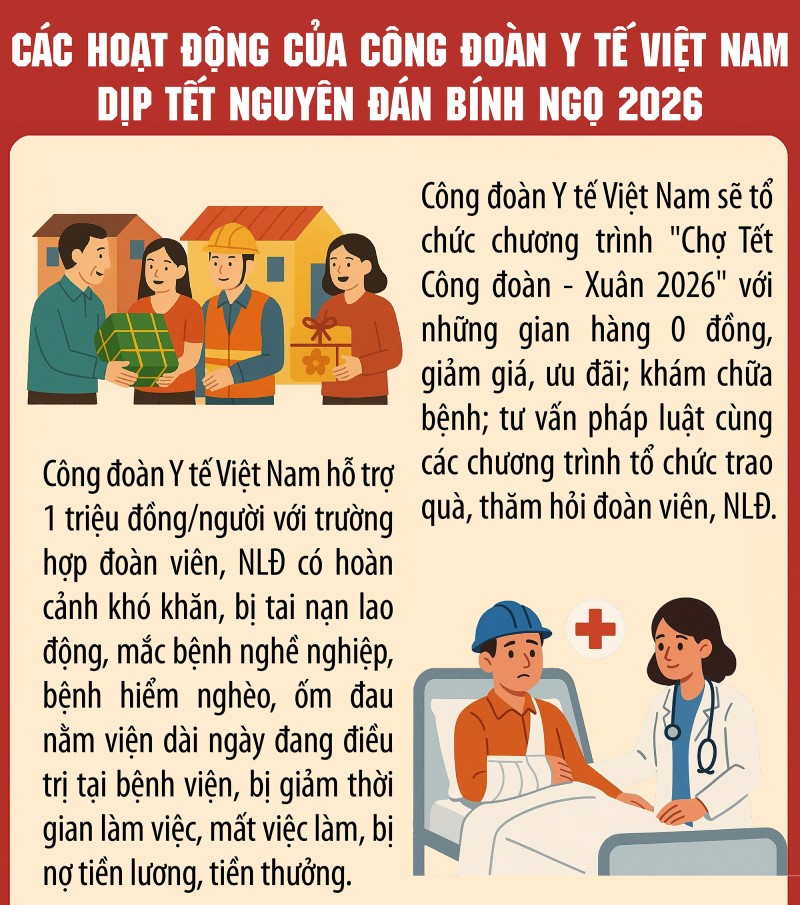 Các hoạt động của Công đoàn Y tế Việt Nam dịp Tết nguyên đán Bính Ngọ 2026