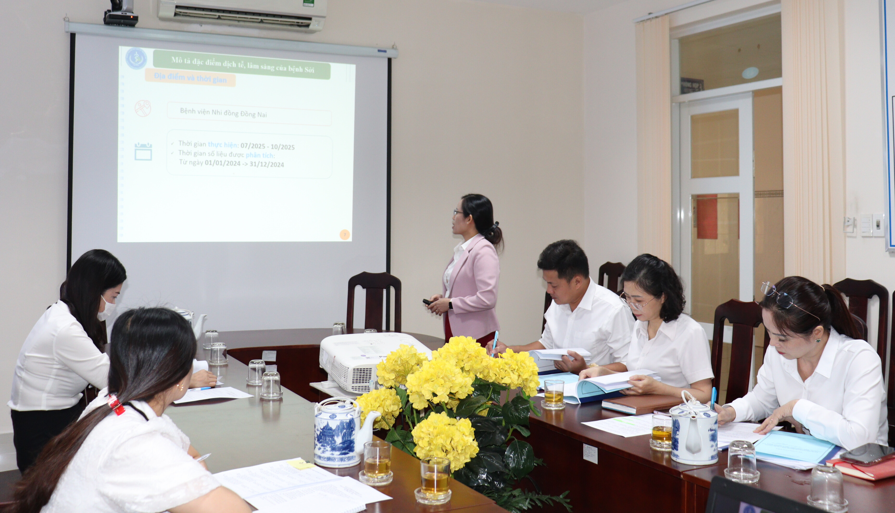 Kết quả, 11/12 đề tài, sáng kiến cấp cơ sở và 1 đề tài cấp tỉnh được phê duyệt, thông qua. Một số đề tài đáng chú ý như: Đặc điểm dịch tễ, lâm sàng và các yếu tố liên quan đến biến chứng của bệnh sởi ở trẻ em tại Bệnh viện Nhi đồng Đồng Nai năm 2024; Tình trạng dinh dưỡng của trẻ dưới 24 tháng tuổi và kiến thức, thực hành nuôi dưỡng trẻ em của bà mẹ tại phòng khám tiêm chủng,Trung tâm Kiểm soát bệnh tật tỉnh Đồng Nai năm 2025; Thực trạng tai nạn thương tích và một số yếu tố liên quan tại huyện Vĩnh Cửu năm 2025…